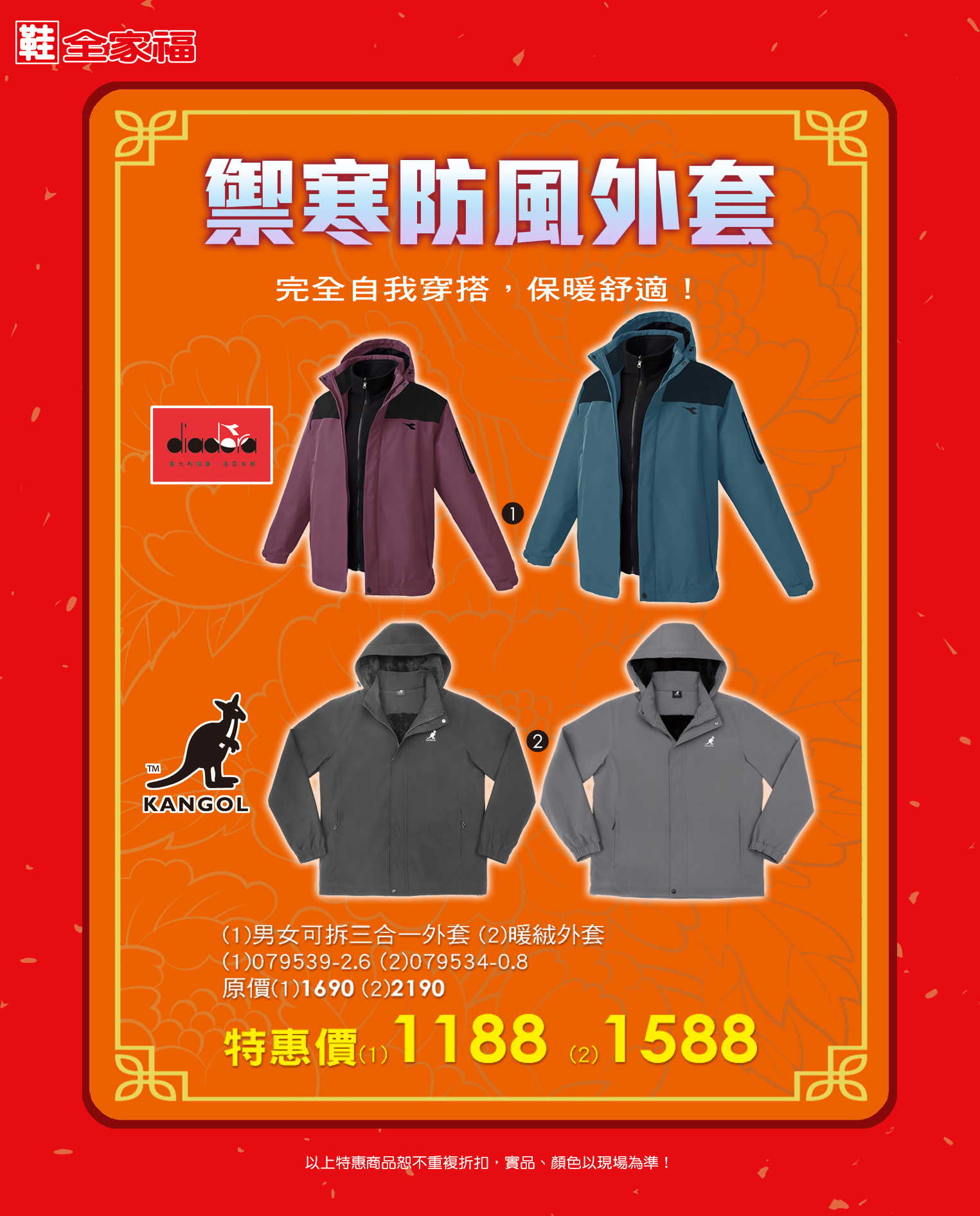 特惠品(禦寒防風外套)